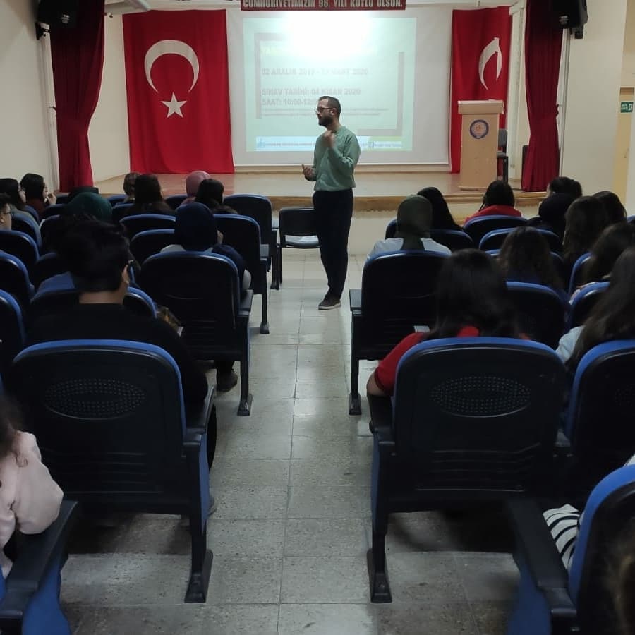 Muhammed DOĞAN Merkez TOKİ MTAL ve Şehit Demet Sezen Güzel Sanatlar Liselerimizdeki öğrencilerimize Peygamber Efendimiz’in (sav) Örnek Âhlakı konulu sunumlarını yaptılar.